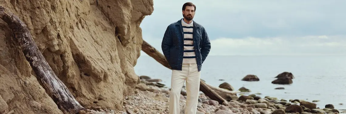 Kolejna warstwa to swetry, golfy i bluzy, które ogrzewają i pozwalają na komponowanie stylowych zestawień. Stawiaj na modele z wełny, merino, kaszmiru lub bawełny. Pod spód możesz założyć gładki T-shirt lub koszulkę termiczną. Spodnie mogą być zarówno eleganckie, np. wełniane czy chinosy, jak i casualowe, np. jeansy lub spodnie dresowe.